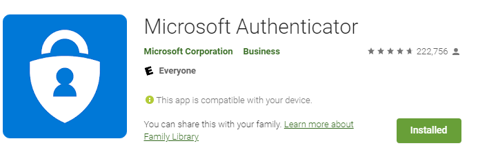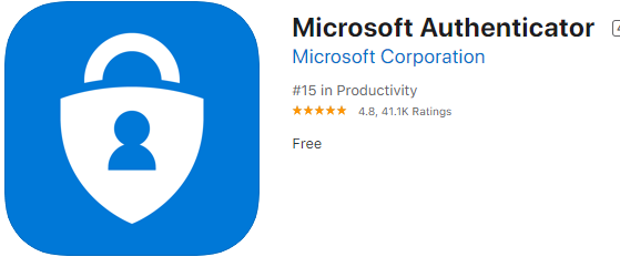 - On your phone, install the Microsoft Authenticator app from the Apple App Store or The Google Play Store. You can search for “Microsoft Authenticator” in either store. The app icon image can be seen below: