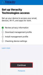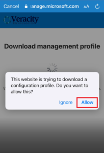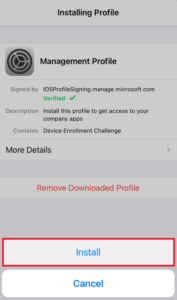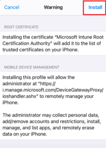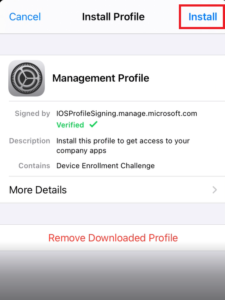 The instructions below will guide you through the process of enrolling your iOS device in your company’s Microsoft Intune Mobile Device Management (MDM) solution.