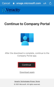 Please note: You will need to install the Intune Company Portal (Company Portal) app on your device prior to proceeding with the following steps.