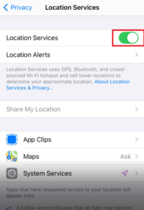 23) By default, Location Services is disabled. Tap on the toggle to enable Location Services.