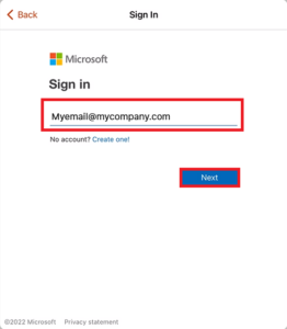 4) Enter the email address that is associated with your Microsoft account and tap Next.