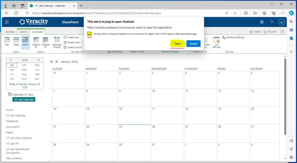 Check the box to always allow the SharePoint site to open links of this kind and click “Open.”