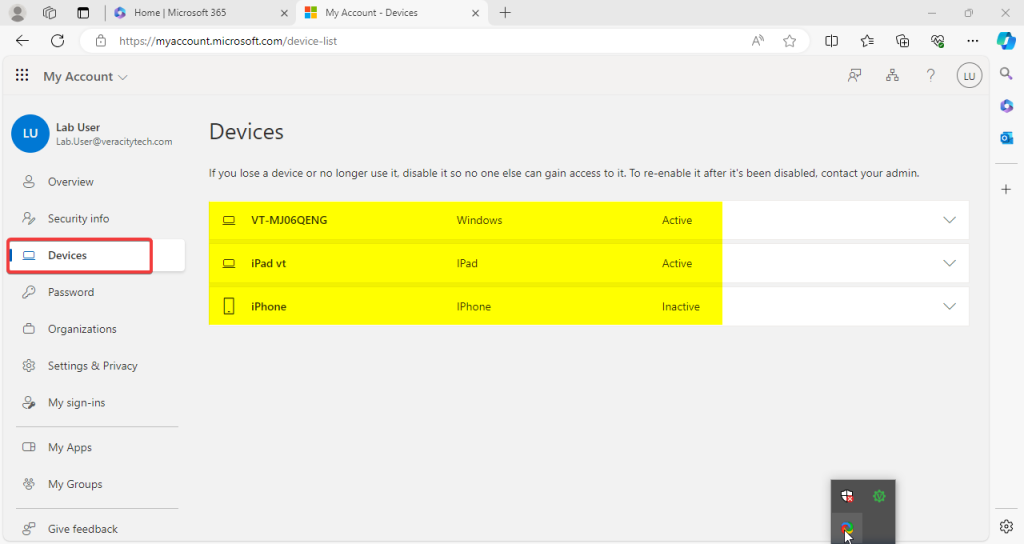 Reviewing your devices – Click “Devices” from the “My Account” tab.