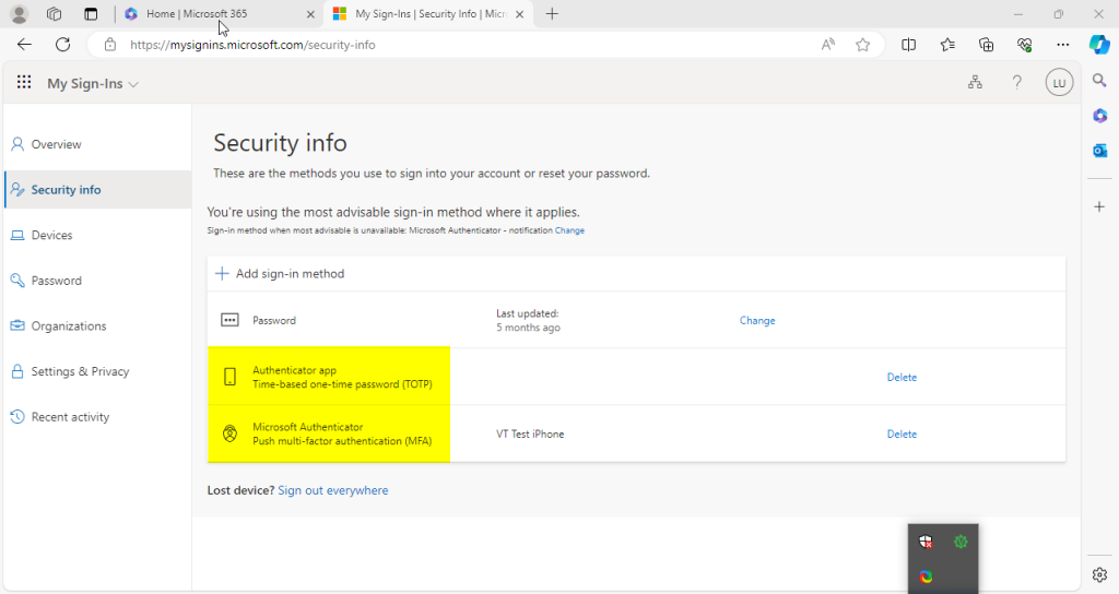 - It will show your Authenticator app, which will show the time-based one time password along with the push notification.